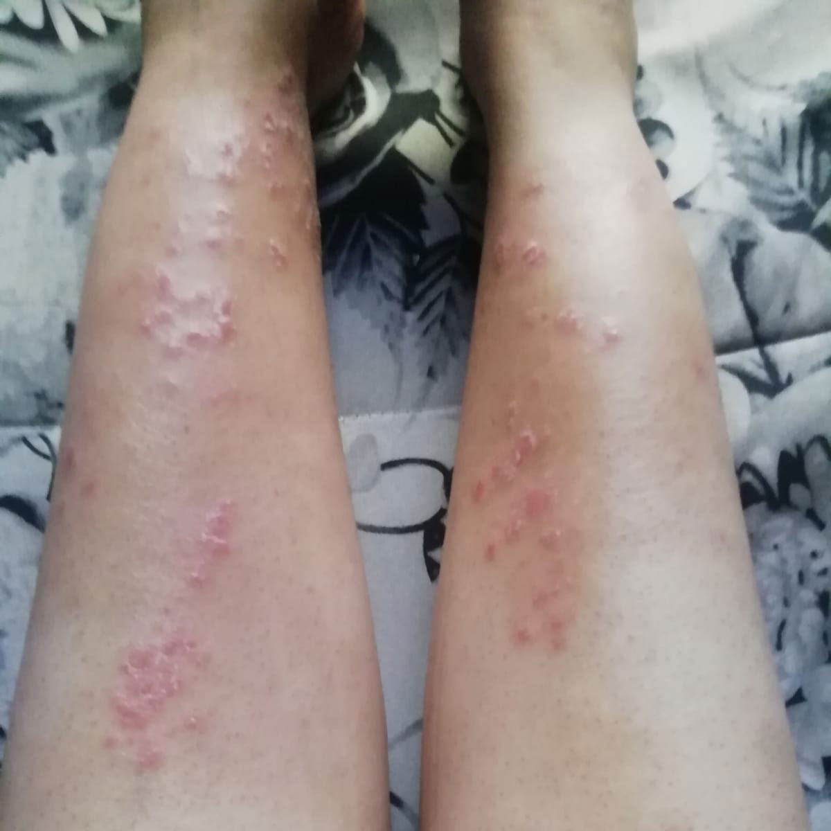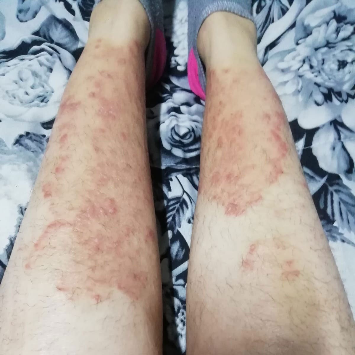 • Rash that typically appears on the arms and behind the knees, but can also appear anywhere.